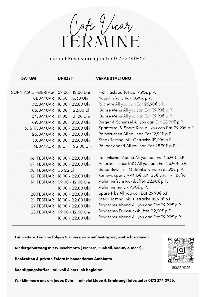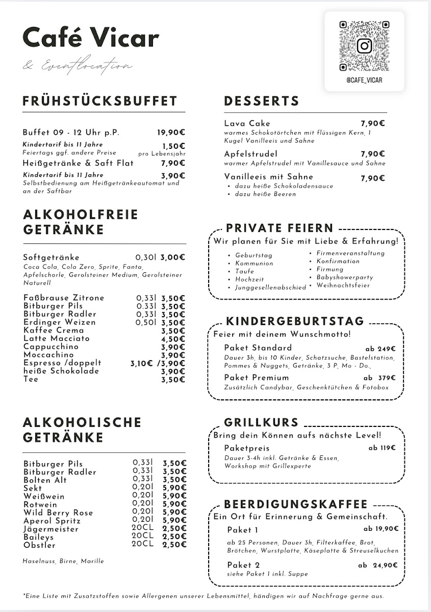 Café Vicar & Eventlocation Menu